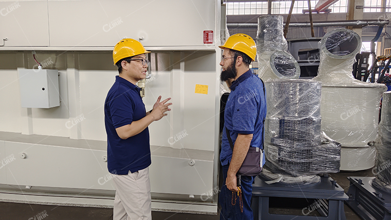 展廳參觀之后,朱經理又帶領客戶來到我們的磨粉機生產車間,以磨輥和磨環為例,向客戶詳細介紹了超細磨粉機的易損件都有哪些,以及易損件的保養維護方法和使用技巧是什么。