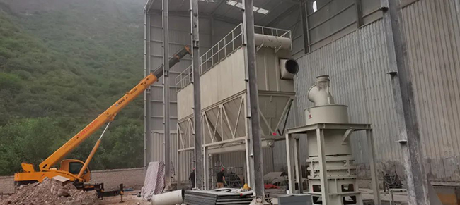 生產線配置:1臺HGM-125主機、1臺選粉機、1臺風機、1臺錘式破碎機、1臺斗式提升機、1臺脈沖除塵器、1臺螺旋給料機、2臺卸料閥、1臺空壓機、1個料倉。